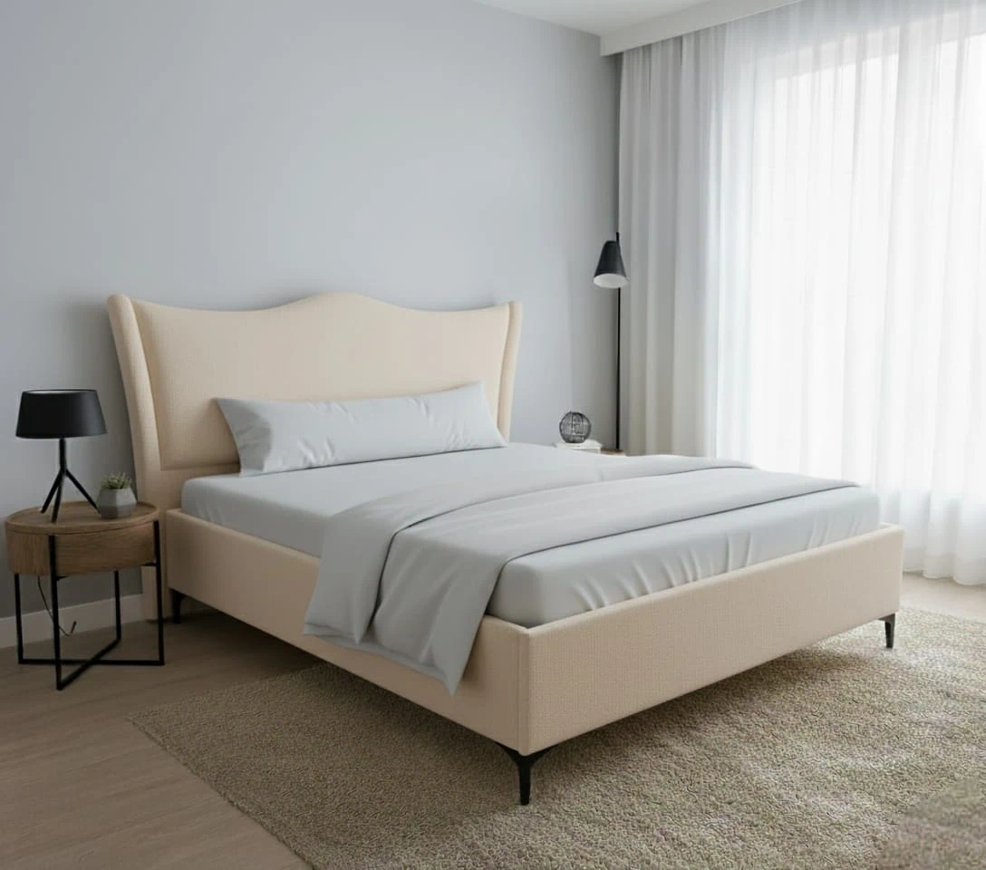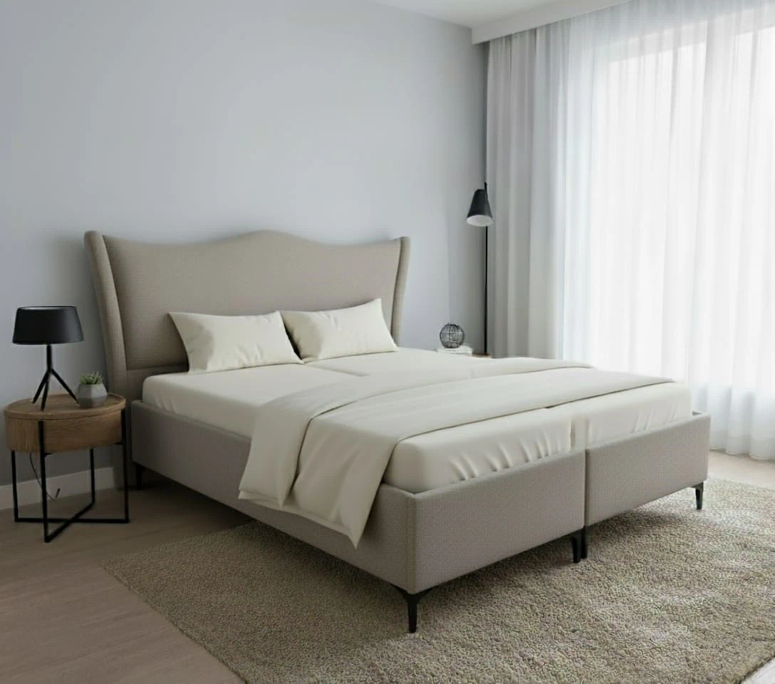 מיטה זוגית בעיצוב נקי ואלגנטי.