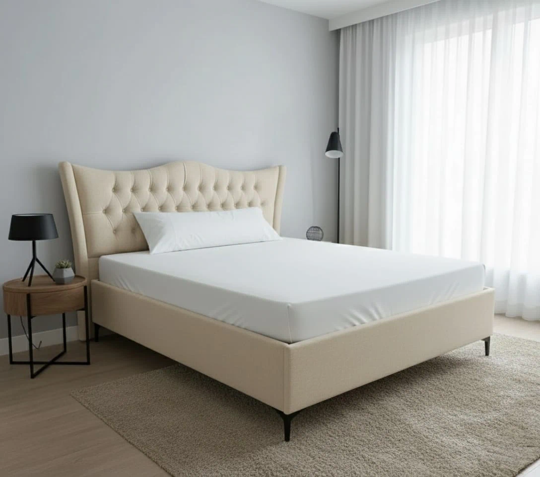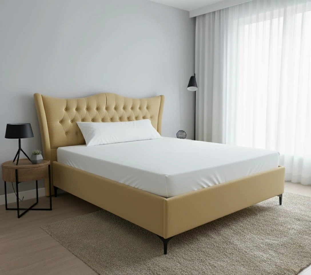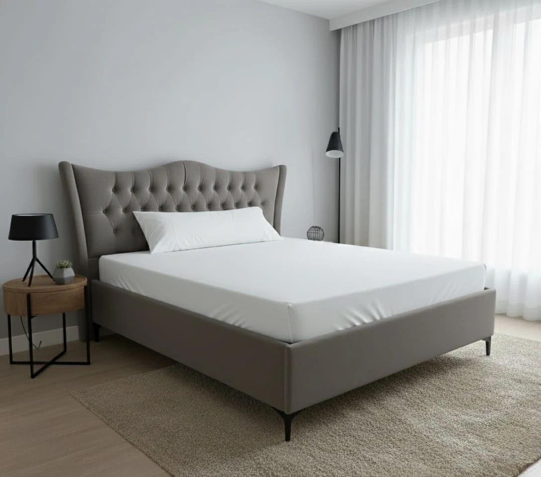 מיטה זוגית בעיצוב נקי ואלגנטי.