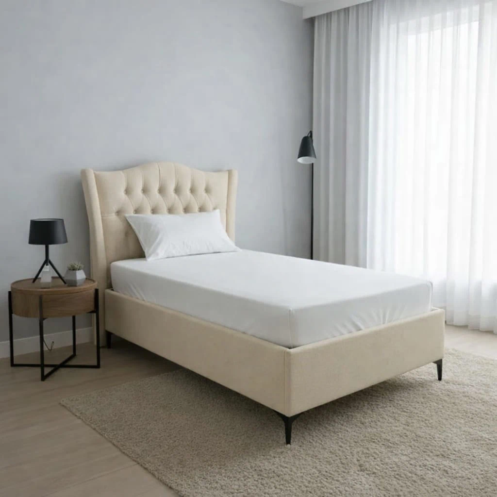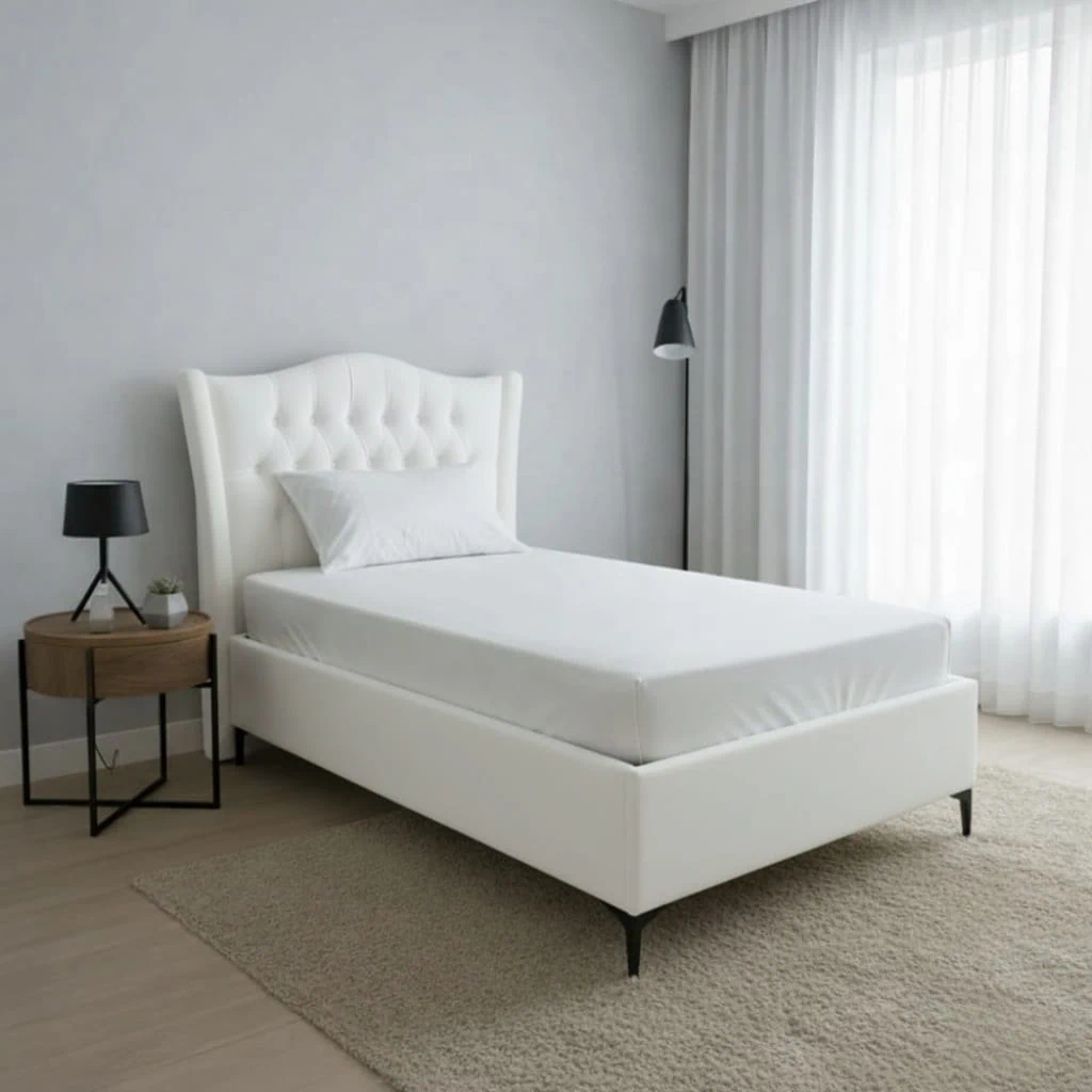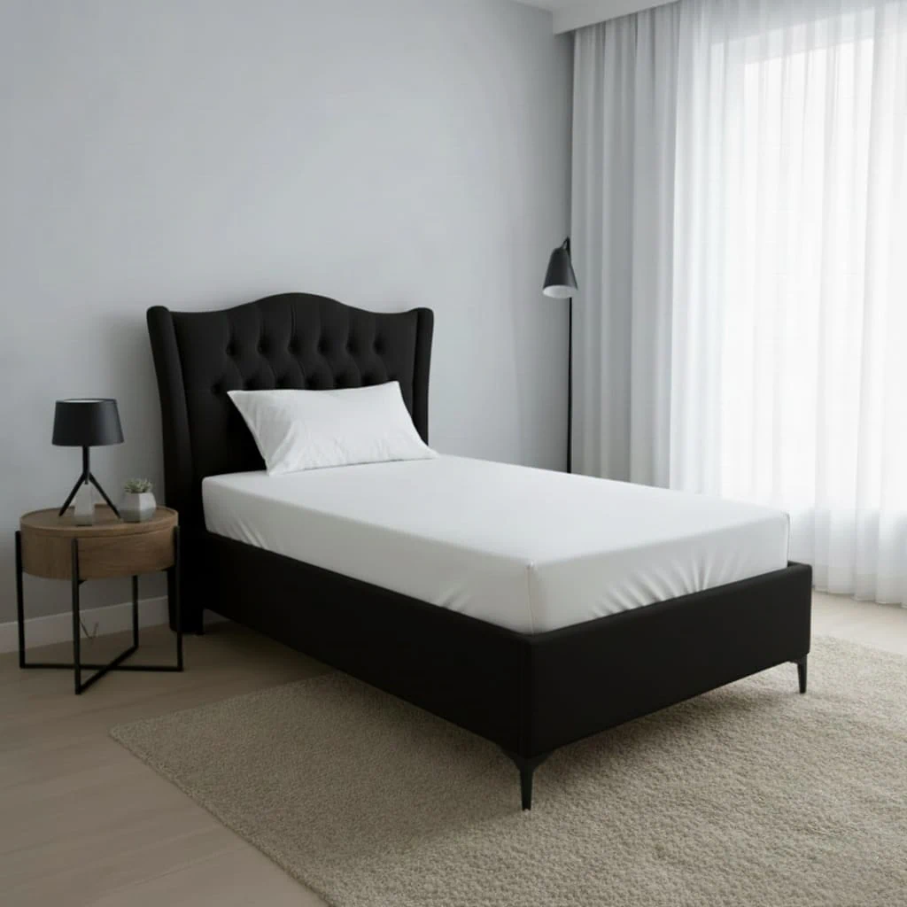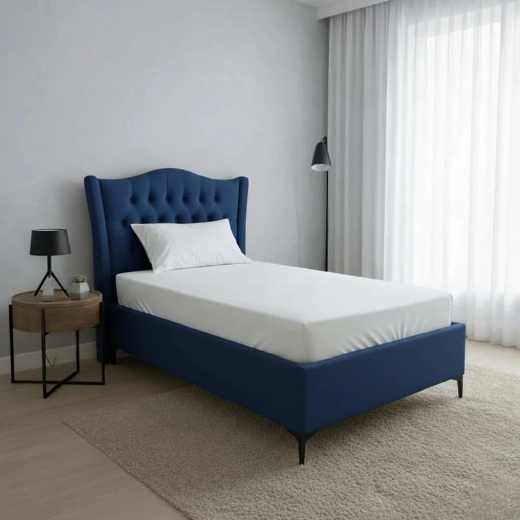 מיטת יחיד בעיצוב נקי ואלגנטי.