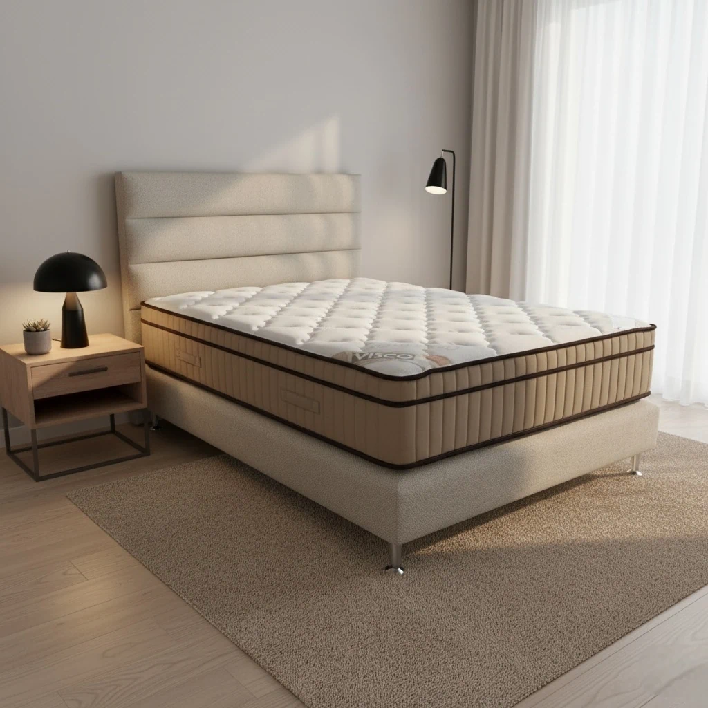 מיטה זוגית בעיצוב נקי ואלגנטי.