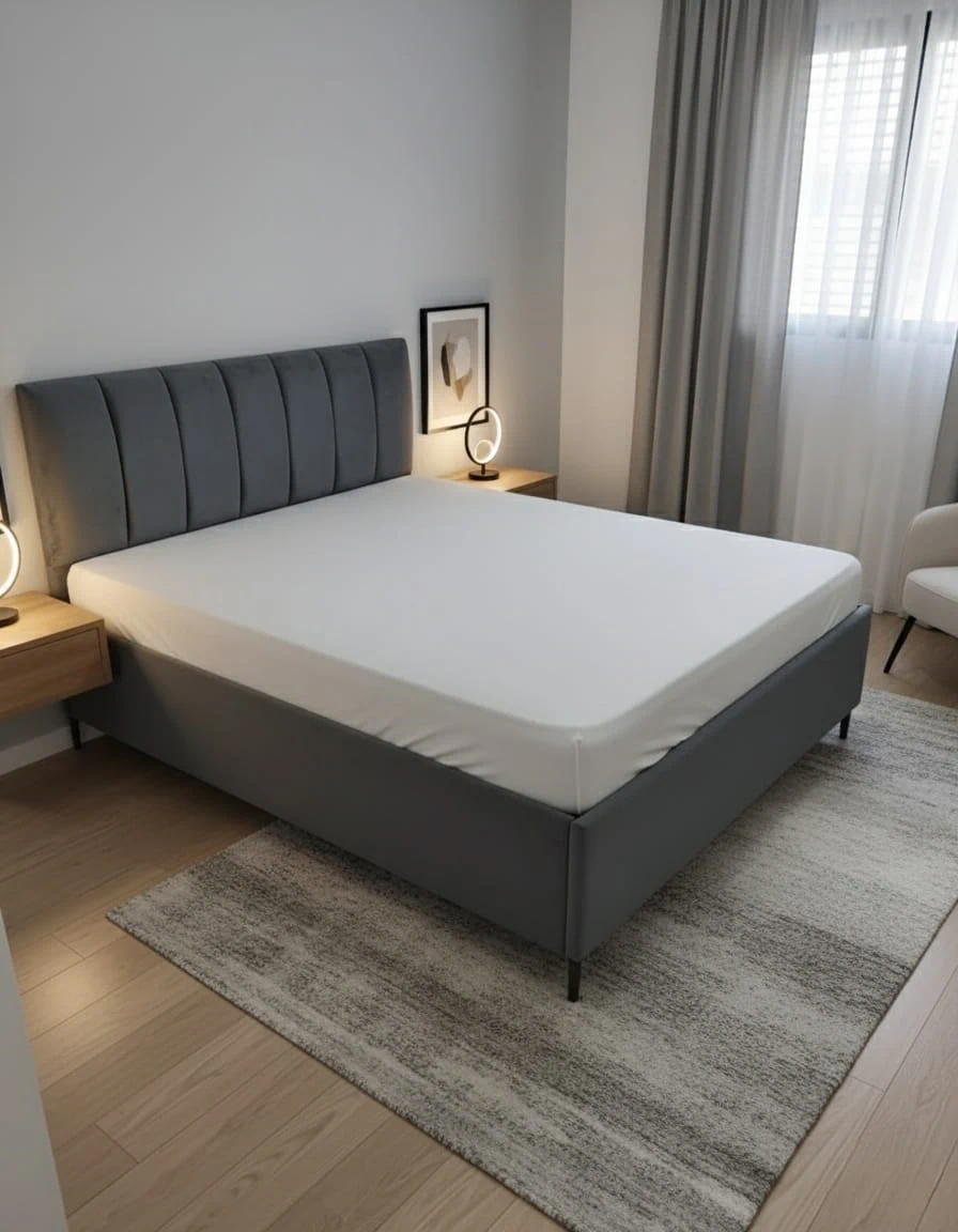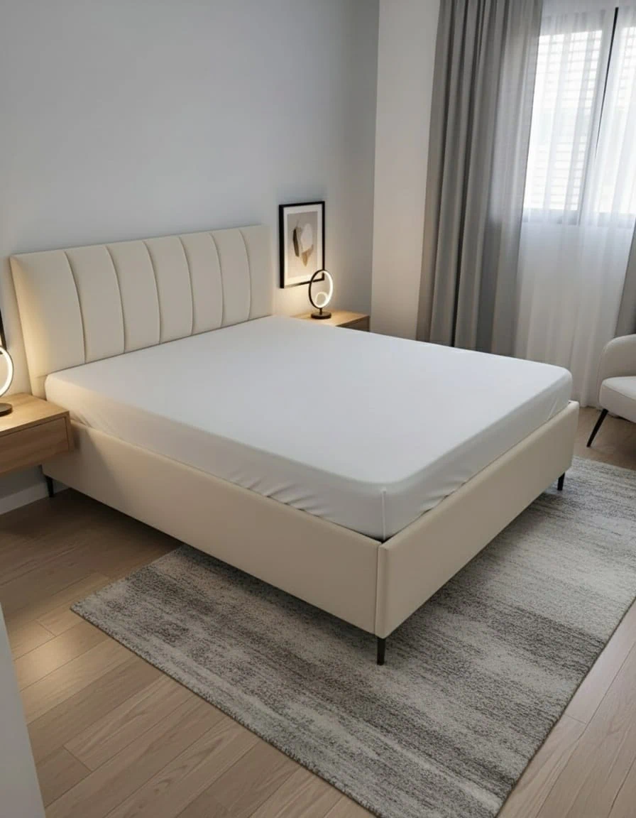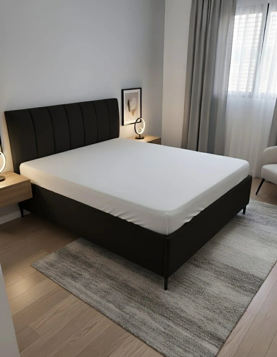 מיטה זוגית בעיצוב נקי ואלגנטי.